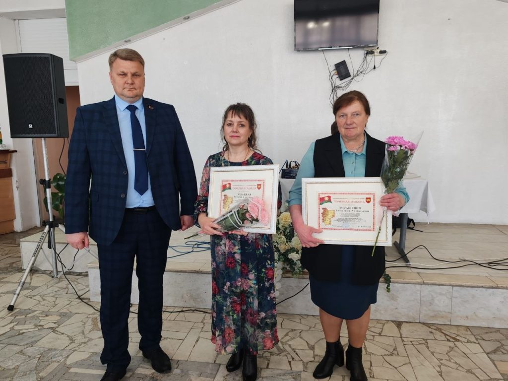 В целях повышения заинтересованности работников животноводства и дальнейшем росте производительности труда, а также достижения высоких показателей в отрасли лучшим работникам сельскохозяйственной сферы Дмитрий Викторович вручил высокие награды: Почетные грамоты райисполкома и Благодарности председателя райисполкома. Их удостоились заведующая МТФ «Маньковщина» Валентина Лукашевич, главный специалист управления по сельскому хозяйству и продовольствию райисполкома Наталья Ушацкая, механизатор на кормораздатчике КСУП «Саковщина-Агро» Иван Рагель, оператор машинного доения МТФ «Замостяны» КУП «Сивица» Лилия Воропай и животновод товарной фермы «Бобровичи» СХУ Бобровичи Василий Кульвановский.