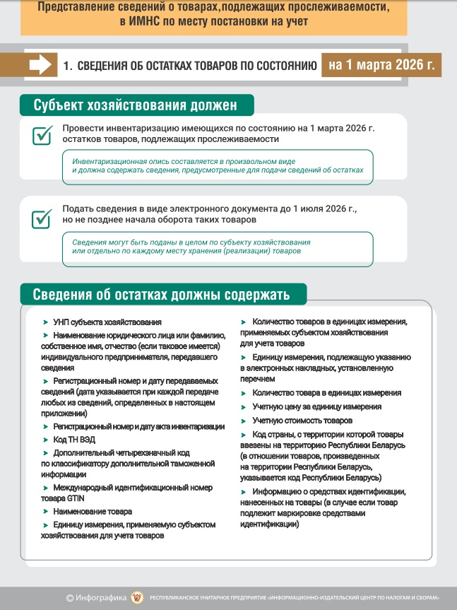 Министерство по налогам и сборам напоминает, что с 1 марта 2026 г. расширяется перечень товаров, подлежащих прослеживаемости. Так, с указанной даты прослеживаемости будут подлежать: