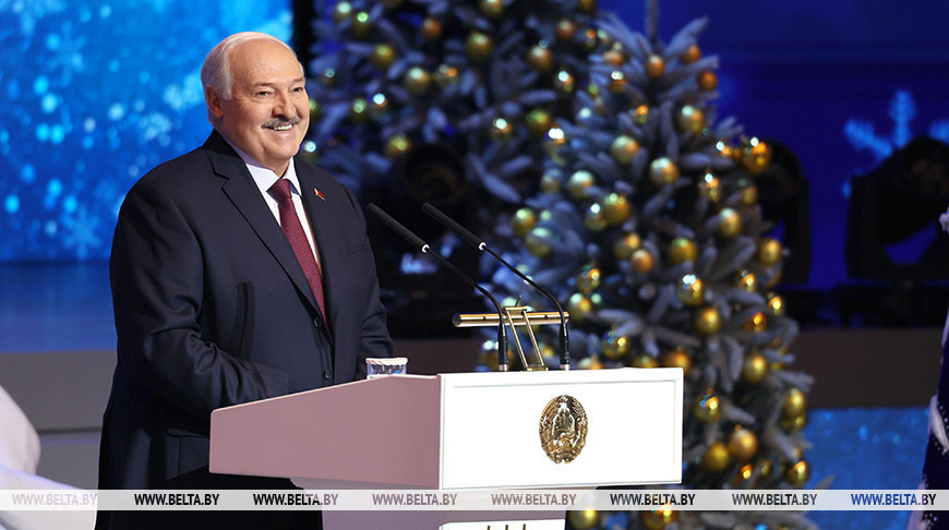 «Я уже очень много наговорил и о труде, и об учебе. Знаю, что вы не только ради этого приехали сюда. Может быть, уже вы посмотрели на Деда Мороза и Снегурочку. И вы, и я, и миллионы людей, которые вас увидят, ждут этого волшебства от наших Деда Мороза и Снегурочки», — заметил Александр Лукашенко и предложил ребятам поблагодарить этих сказочных персонажей за праздник.