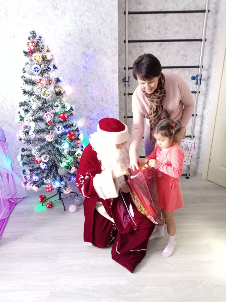 Маленькая Амелия Осипчук мечтала о кукле Маше и медведе. Её желание исполнили самые сказочные гости: роль Снегурочки примерила начальник управления по образованию, спорту и туризму Татьяна Крикало. А для малышки Арианны Дед Мороз и Снегурочка прибыли прямиком из районного центра гигиены и эпидемиологии, чтобы вручить заветный подарок.