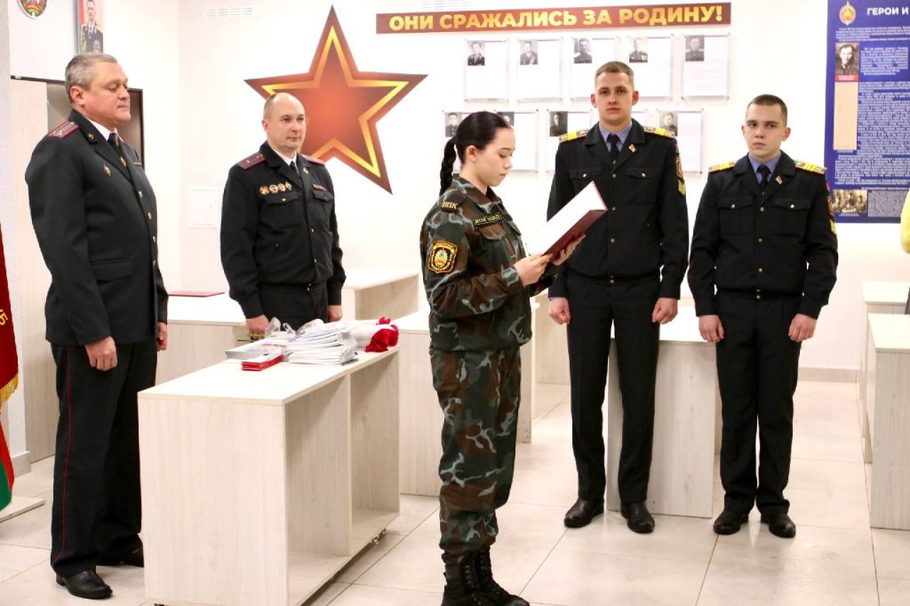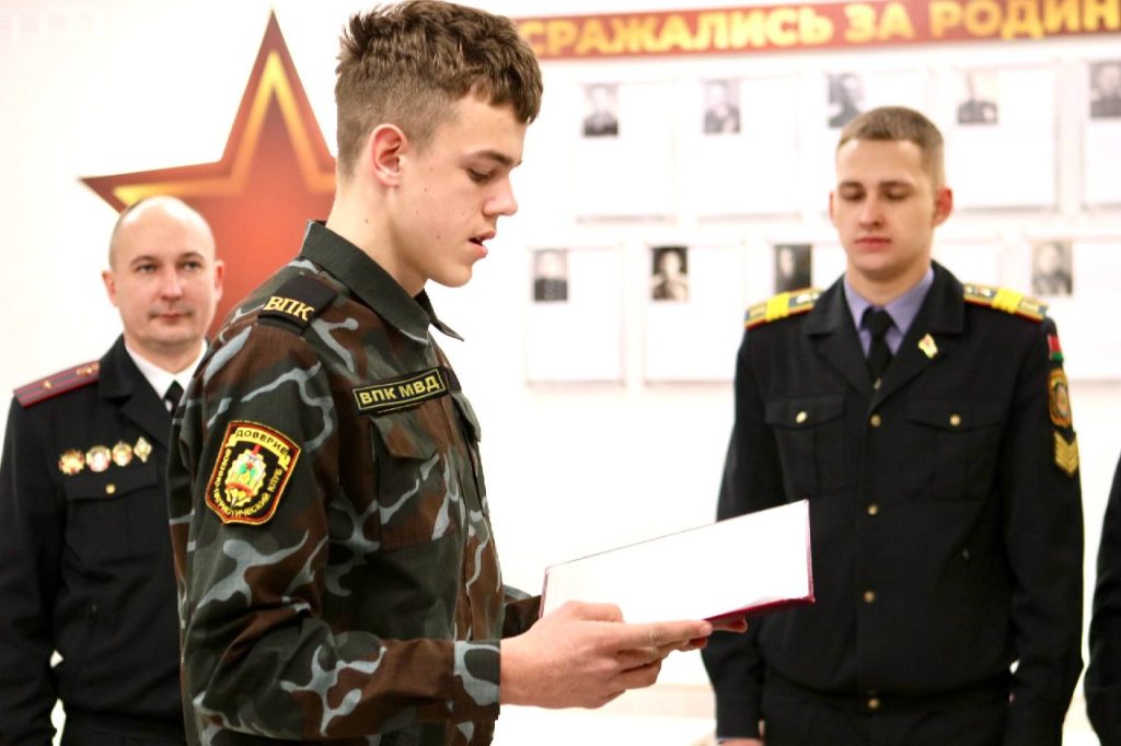 В здании Воложинского РОВД в ряды военно-патриотического клуба МВД «Доверие» были приняты 13 мальчиков и девочек района. Мероприятие открыл начальник Воложинского РОВД полковник милиции Сергей Аляшкевич.