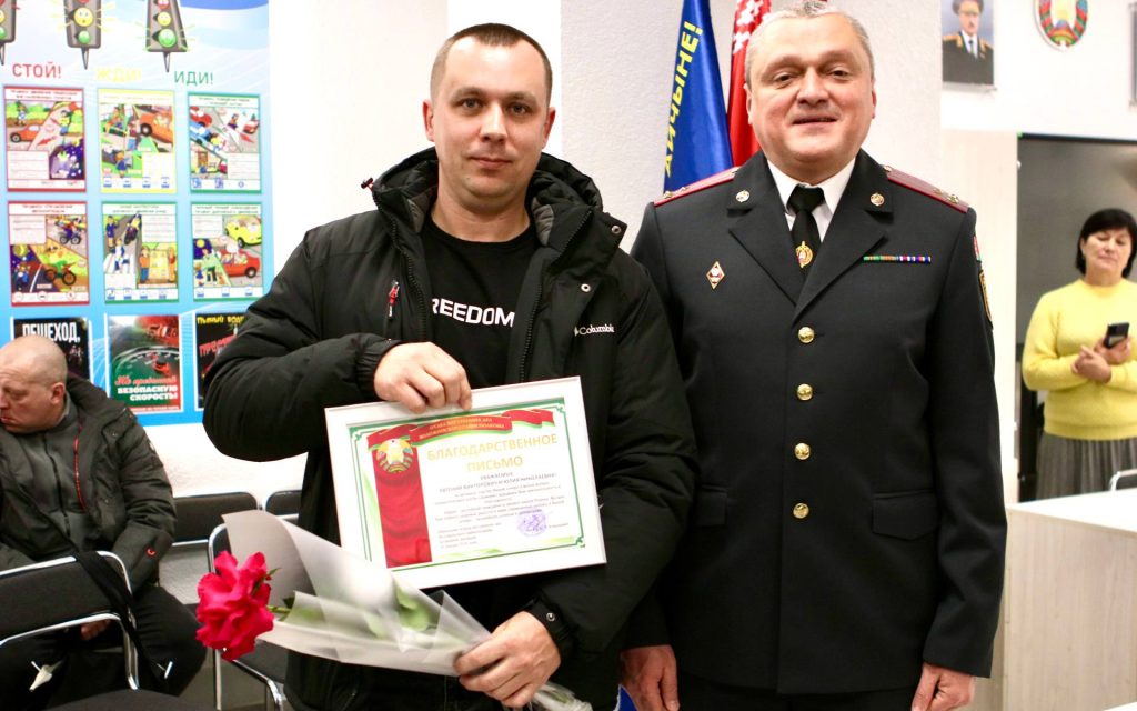 На этом сюрпризы не закончились. Начальник Воложинского РОВД Сергей Аляшкевич поблагодарил родителей за отличное воспитание детей и вручил некоторым из них Благодарственные письма.
