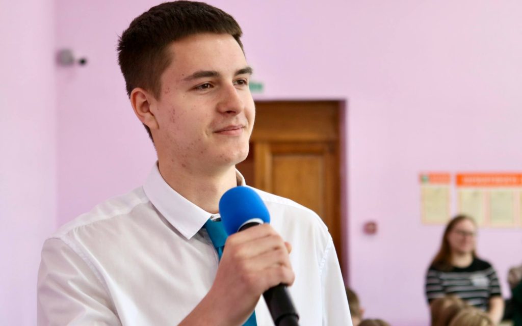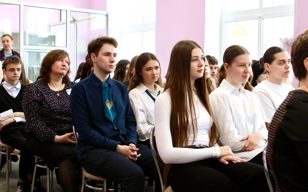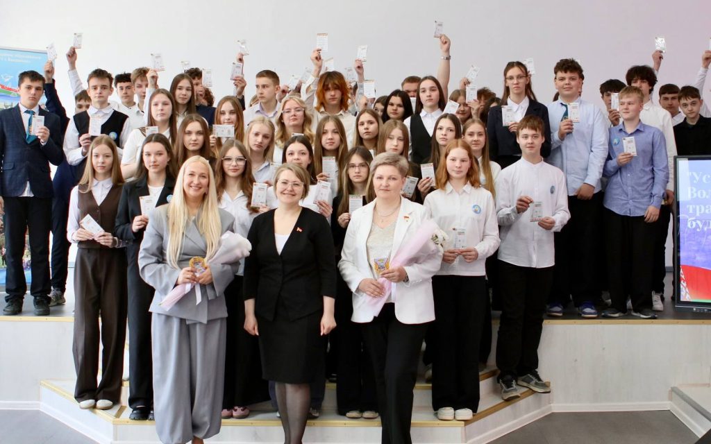 После встречи одиннадцатиклассники выступили с небольшим концертом. А потом случилось торжественное событие. Больше 60 учеников приняли в БРСМ. Значки и билеты им вручила Татьяна Дедюль.