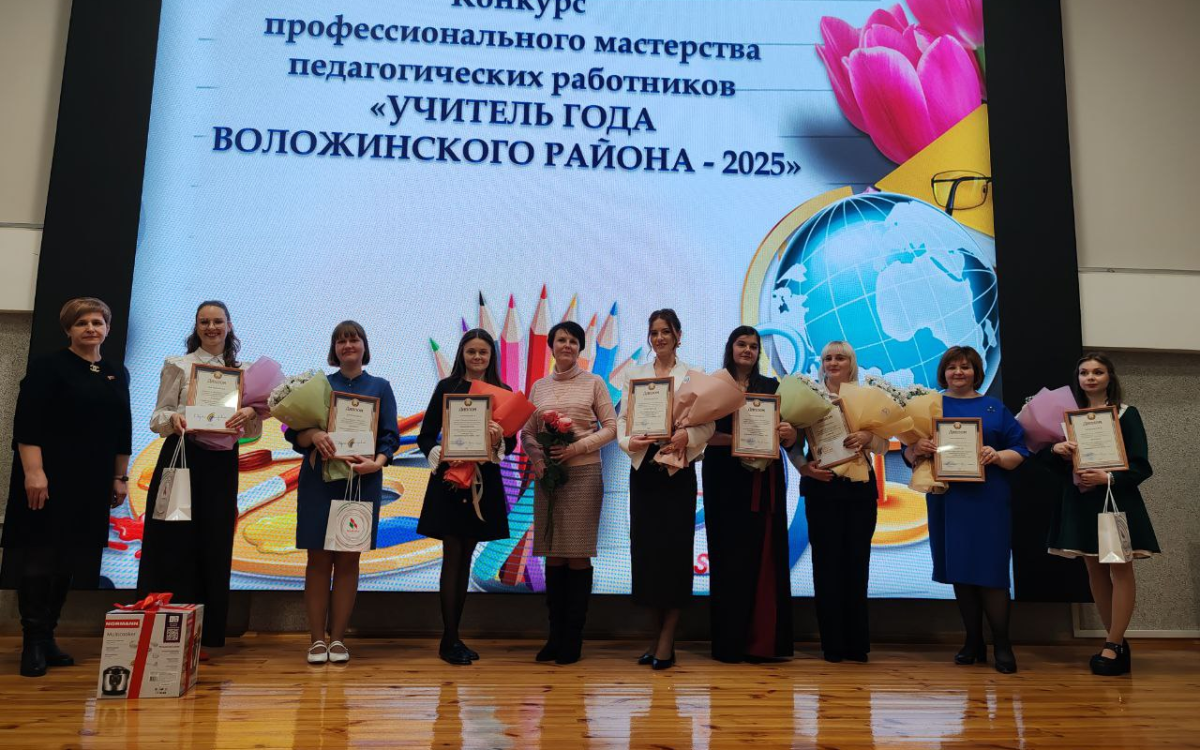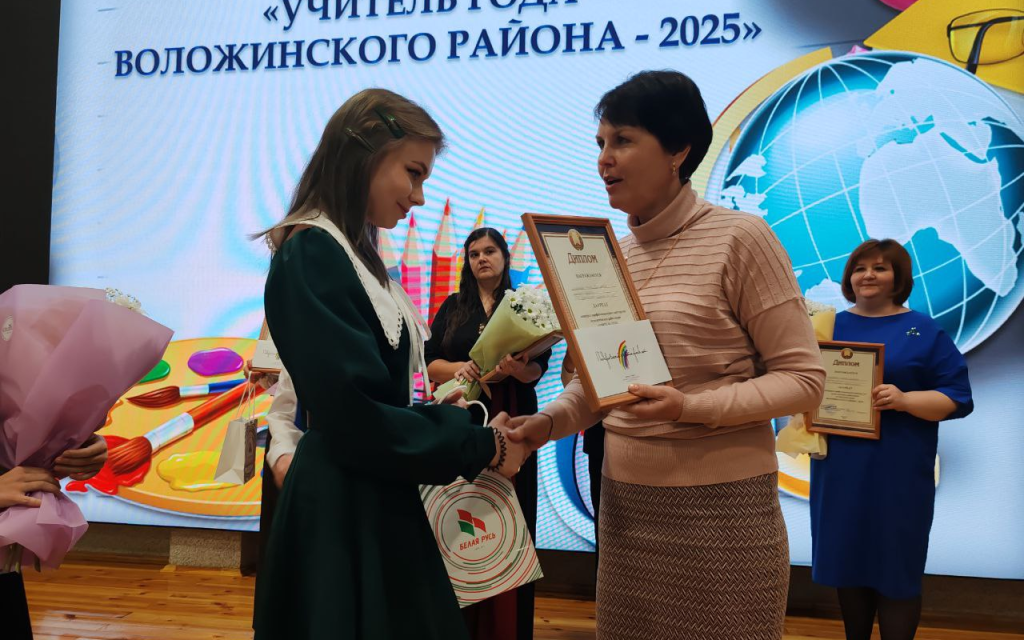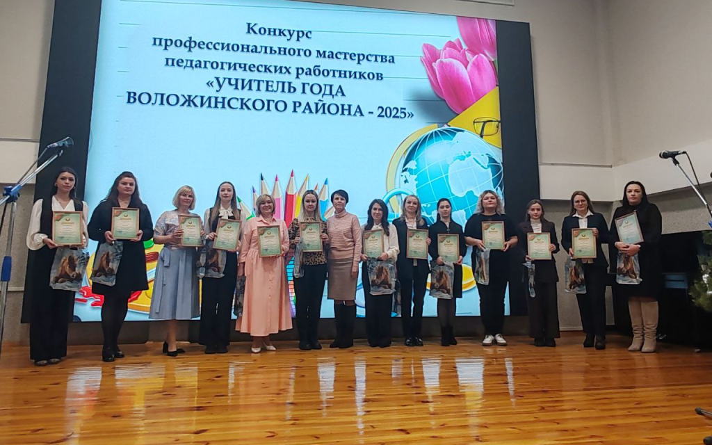 Диплома лауреата конкурса профессионального мастерства педагогических работников «Учитель года Воложинского района — 2025» и сертификатами районного отделения Белорусской партии «Белая Русь» и районной организации Республиканского общественного объединения «Белая Русь» удостоились финалисты, не ставшие победителями.