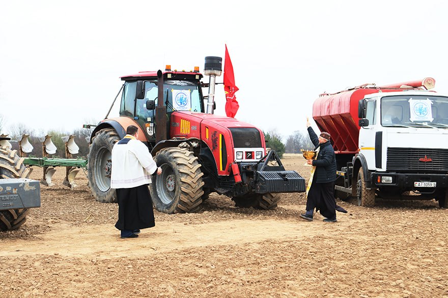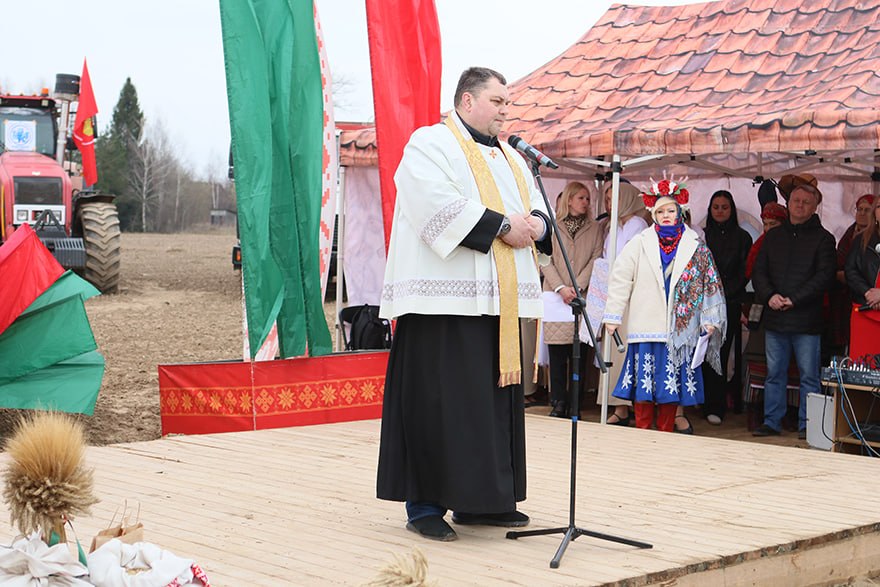 Во все времена перед началом сева крестьяне просили у Бога благословения на успешную работу и благоприятную погоду. Благословить и освятить ниву, технику и всех участников праздника прибыли настоятель храма Преображения Господня отец Сергий и пробощ костёла Святого Юзефа в Воложине ксендз Валентин. Священнослужители прочитали молитву и окропили святой водой руководство района, трактористов-машинистов и технику, чтобы работа спорилась и принесла достойный результат.