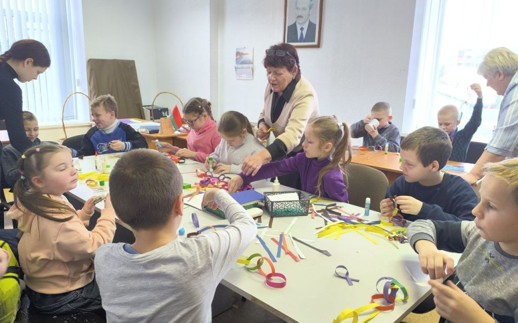 Открытием для них стали виниловые пластинки и проигрыватель, а также в ёлочные игрушки минувшего века. Под впечатлением от увиденного дети сами изготовили новогодние гирлянды из бумаги по старинной технологии.