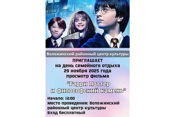 29 ноября смотрим культовый фильм: «Гарри Поттер и философский камень» Погрузитесь в атмосферу магии Хогвартса, которая как нельзя лучше настраивает на зимние чудеса и ожидание праздника! Начало: 12:00 Место: Воложинский районный центр культуры Вход: Бесплатный! Приходите всей семьей, чтобы вместе провести время уютно и волшебно. Дарите детям сказку, а себе — воспоминания! Отличный способ запустить... читать далее