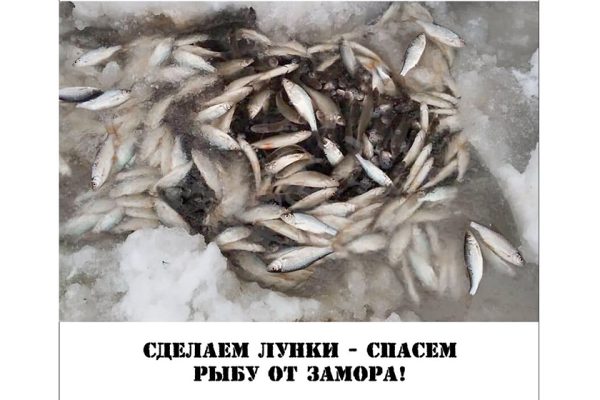 Установившиеся морозы способствуют образованию на поверхности водоема ледяного панциря, блокирующего доступ атмосферного воздуха и кислорода, что может сопровождаться массовой гибелью рыбы. Заморы – это массовая гибель рыб в результате уменьшения растворенного в воде кислорода. В целях эффективных мер по предупреждению зимних заморов рыбы относится изготовление прорубей на водоемах, предрасположенных к заморным явлениям. Количество прорубей зависит... читать далее